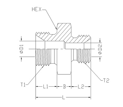 ITEM P/N T1 T2 D1 D2 L1 L2 B L HEX